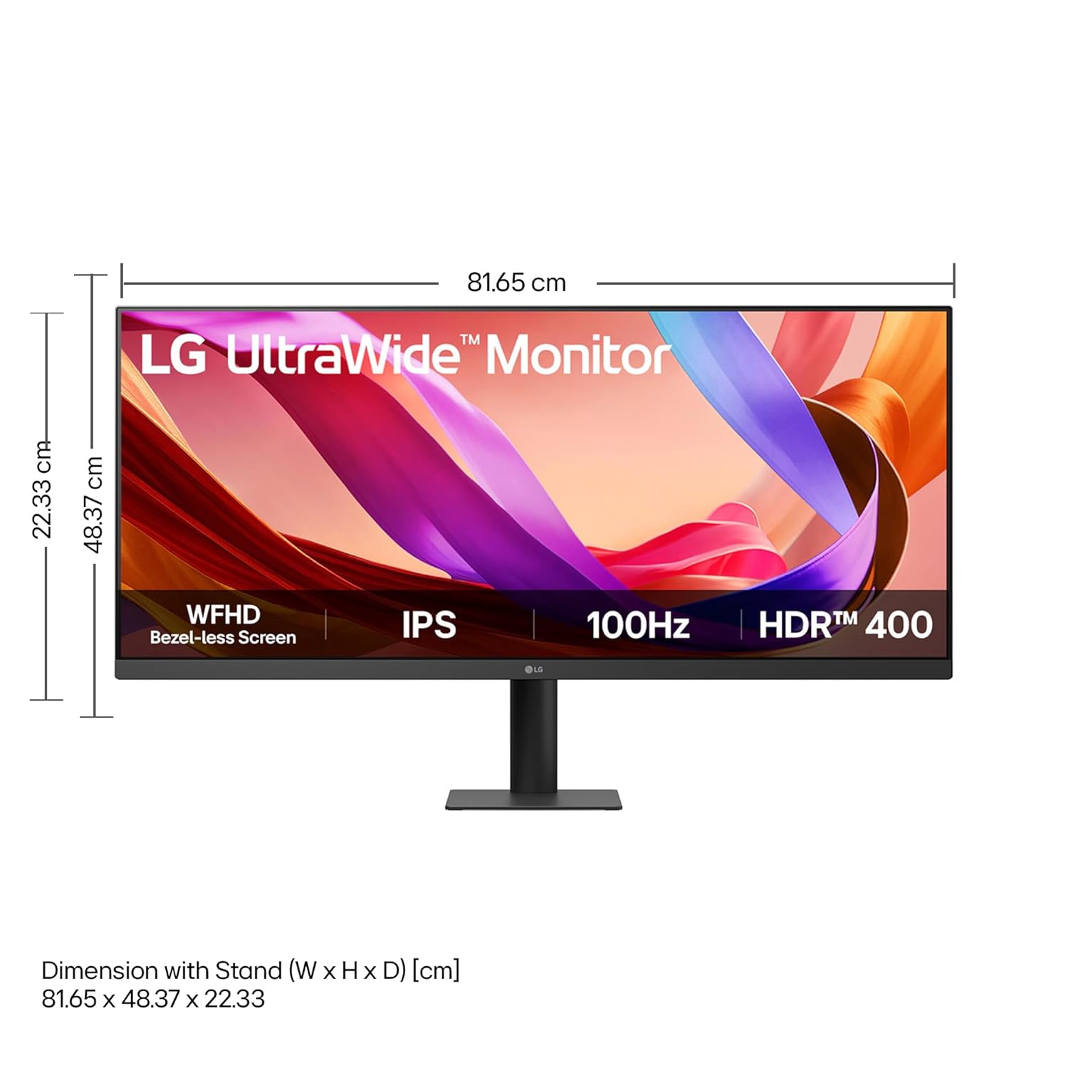 LG 34U511A UltraWide Monitor 34”, WFHD 2560×1080 IPS, 21:9 UltraWide, sRGB 99%, HDR400, 100Hz, Height Adjustable, Eye Care, VESA Mount, Clutter-Free Stand, Tilt & Swivel, HDMI