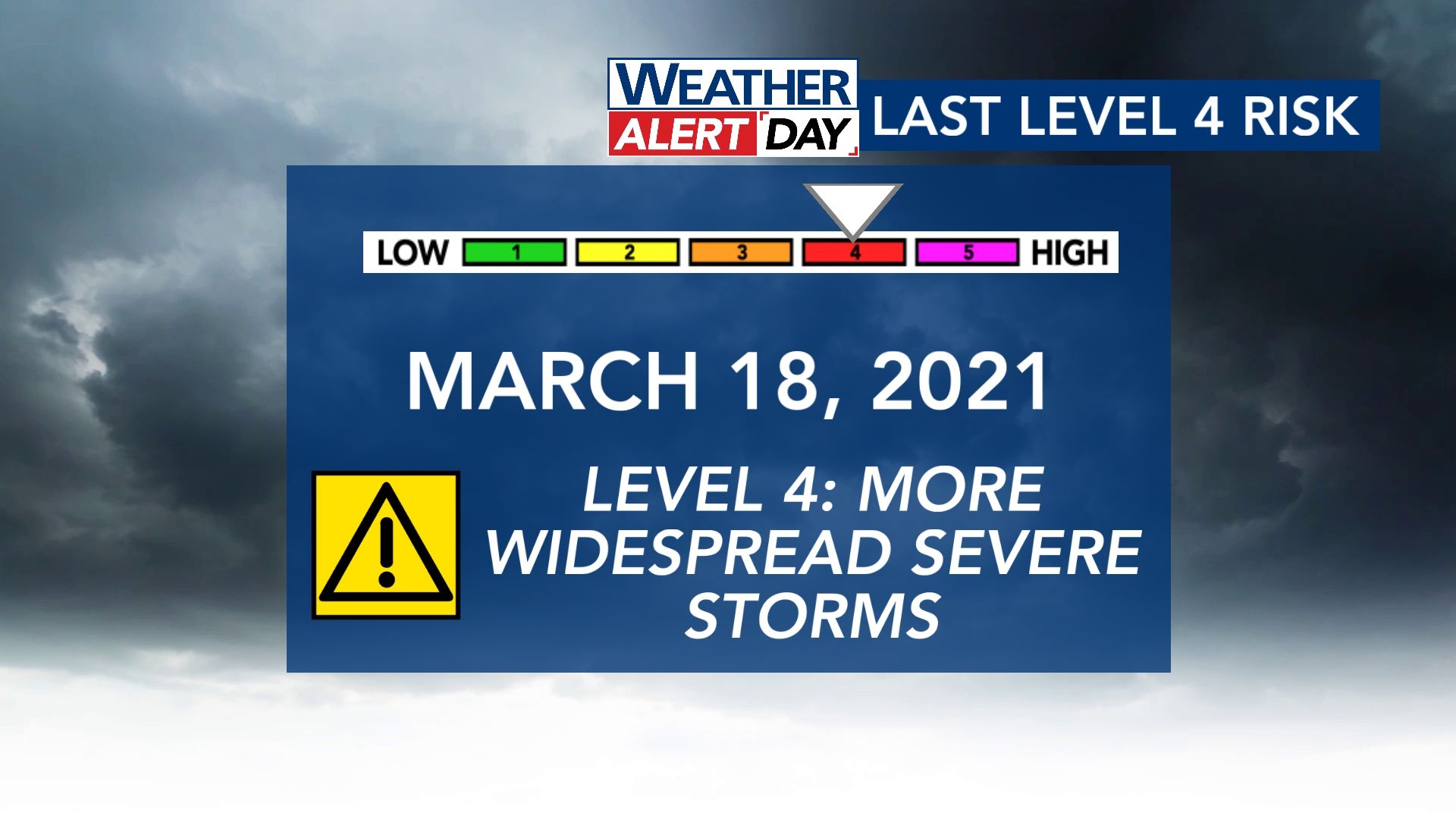 The last time our area was in a Level 4 risk for the following day was in March of 2021.