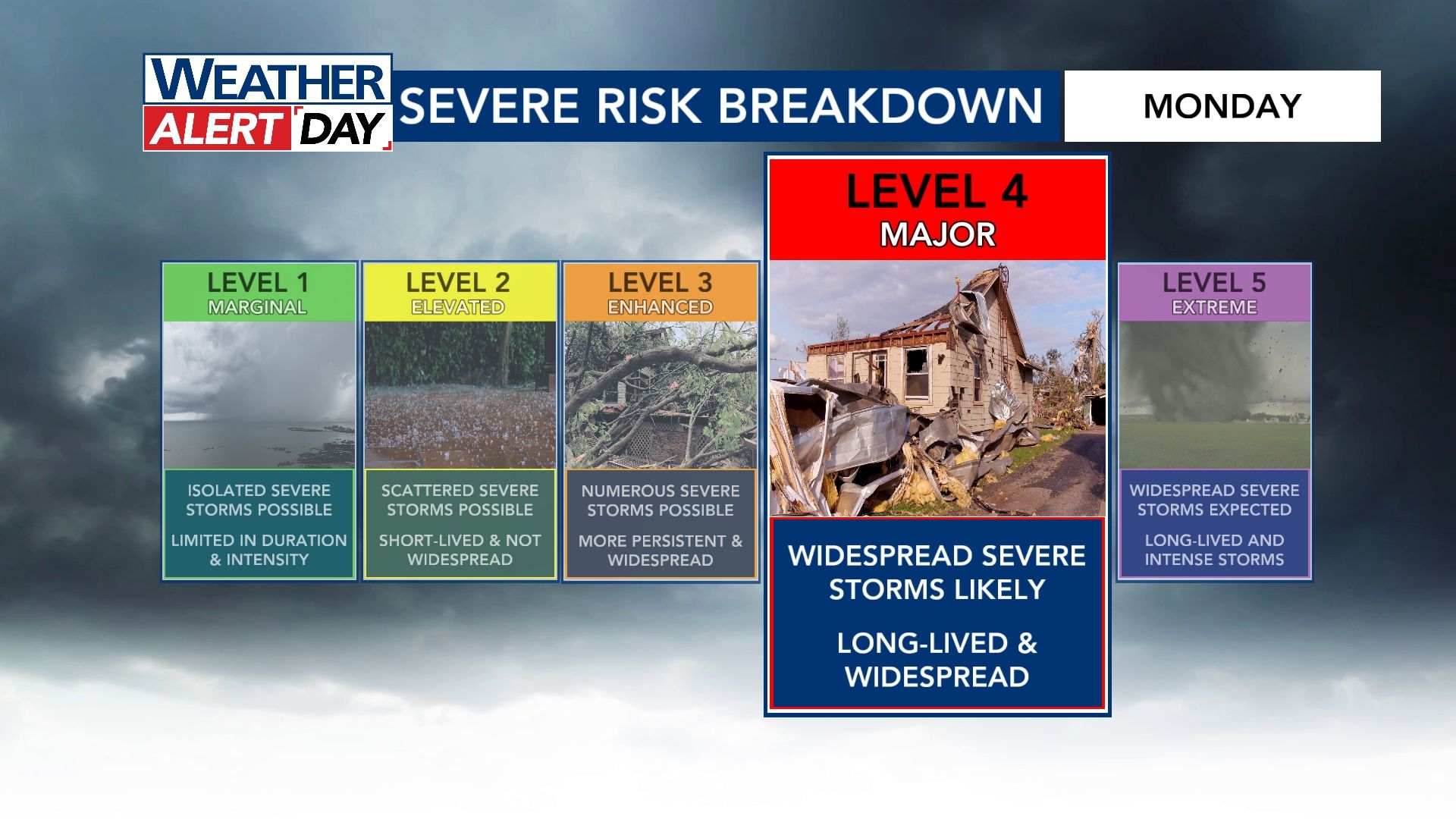 A rare Level 4 risk out of 5 has been issued for our area by NOAA’s Storm Prediction Center.